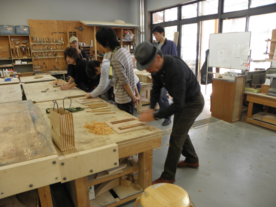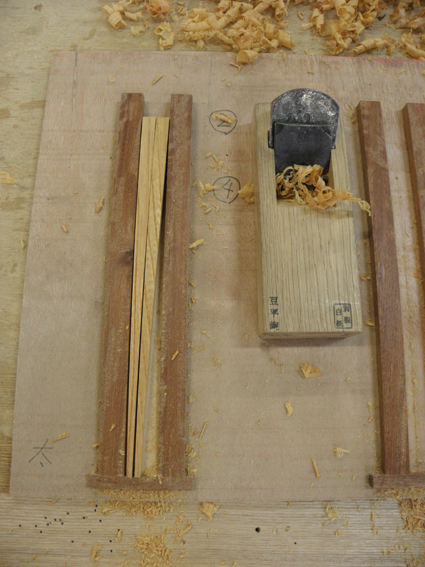 まずは材料選びは色々ある中ららけやきを選び、木工房の生徒さんの指導で久しぶりのカンナがけでした。