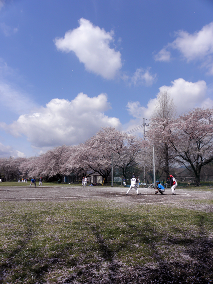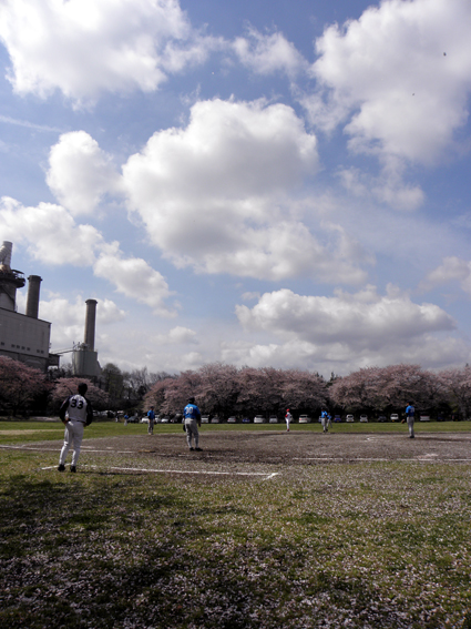 今期リーグ戦第1戦を桜舞い散る太平洋セメントグランドで鹿山ソフトクラブとの対戦でした。